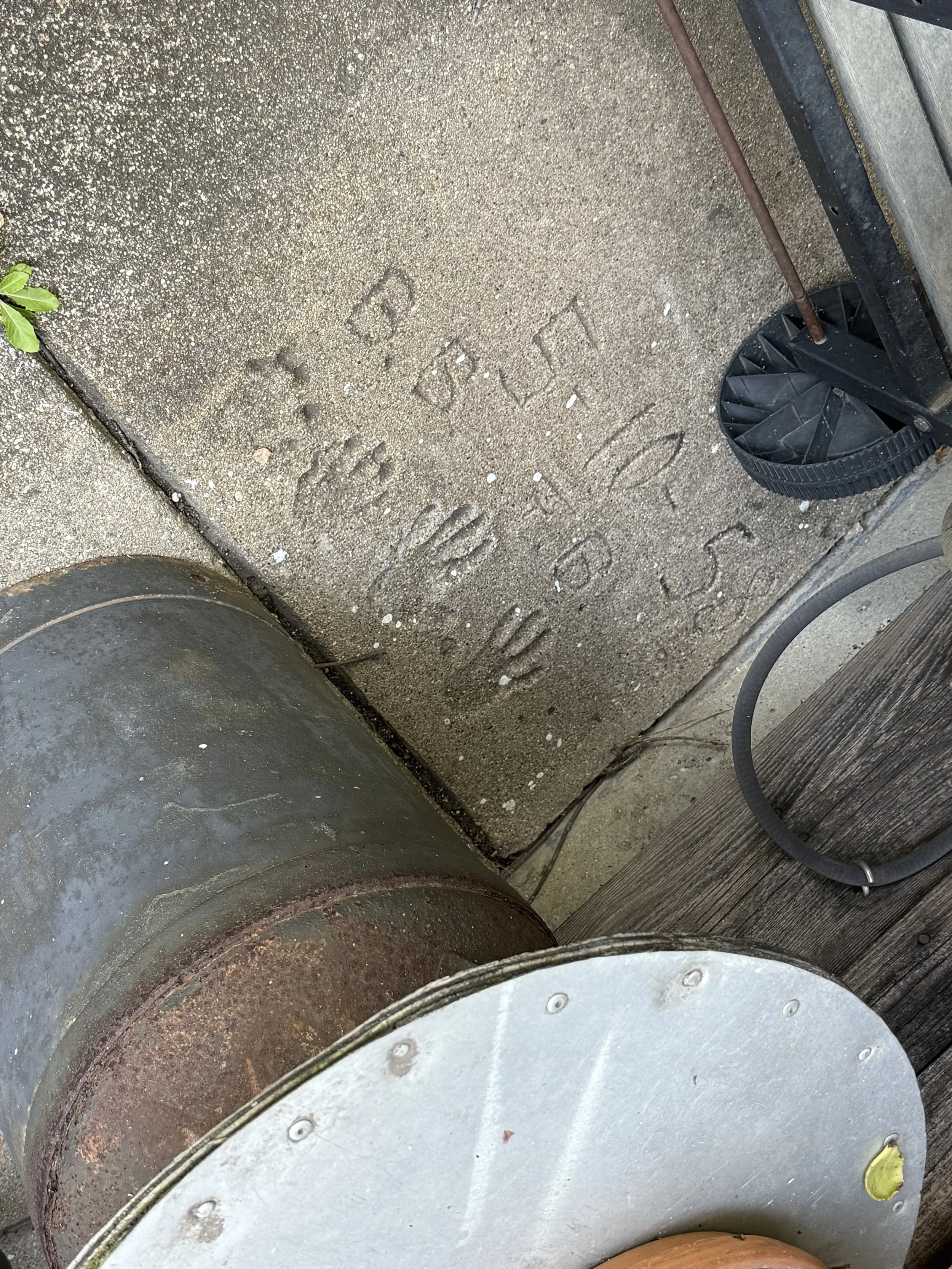 While I was there last week, I thought a lot about legacy. You see, my grandma still lives in the house she and my grandpa bought. They haven’t moved, not once. That was where they raised my mom and my uncle. I even found a set of handprints in the cement, left by my mom and her brother in 1958.